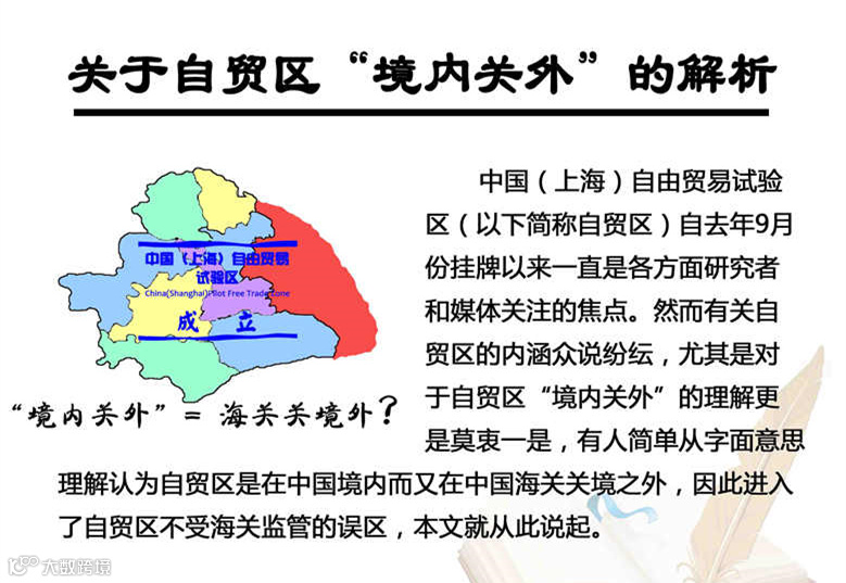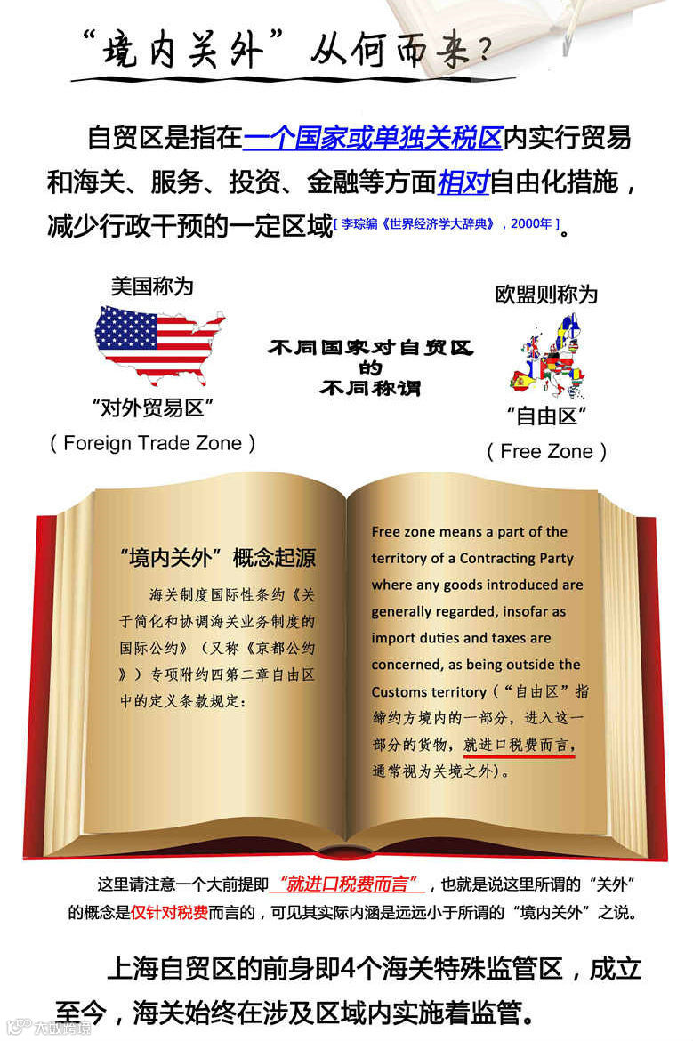 上海自贸区一直是各方研究者和媒体关注的焦点,对于自贸区“境内关外”的理解更是众说纷纭。“境内关外”的概念从何而来、其他国家如何解读、上海自贸区如何体现海关制度?戳开下图