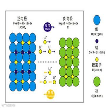 Li-ion电池的正极材料是氧化锂钴,负极材料是碳材。电池通过正极产生的锂离子在负极碳材中的插入与脱插来实现电池的充放电过程,所以人们称之为Li-ion电池。