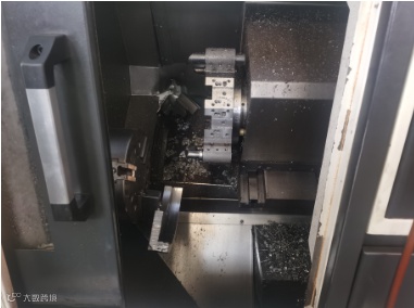受损程度: 内部加工件包括主轴变形、刀架/卡盘等碎裂,底部基座碎裂,设备报警