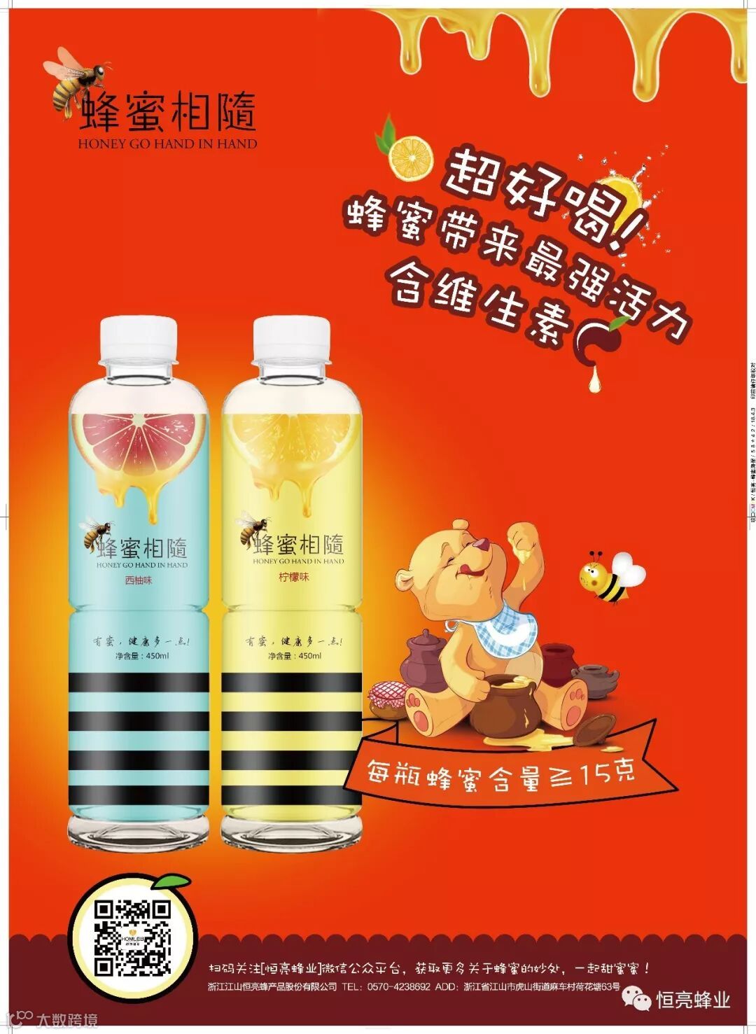 作为一家专业从事蜂产品行业30年的老牌蜂产品公司,浙江江山恒亮蜂产品股份有限公司在2018年开年重磅推出蜂蜜果味饮料———蜂蜜相随,为火爆的市场再添一把火,为经销商选品提供了一个绝佳的选择!