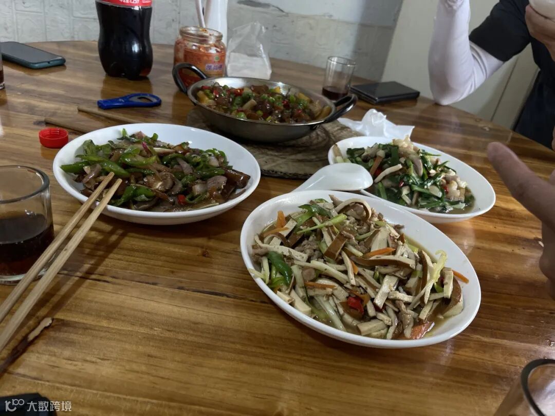 吃了一顿地道的土菜,地道的每个人两碗米饭打底