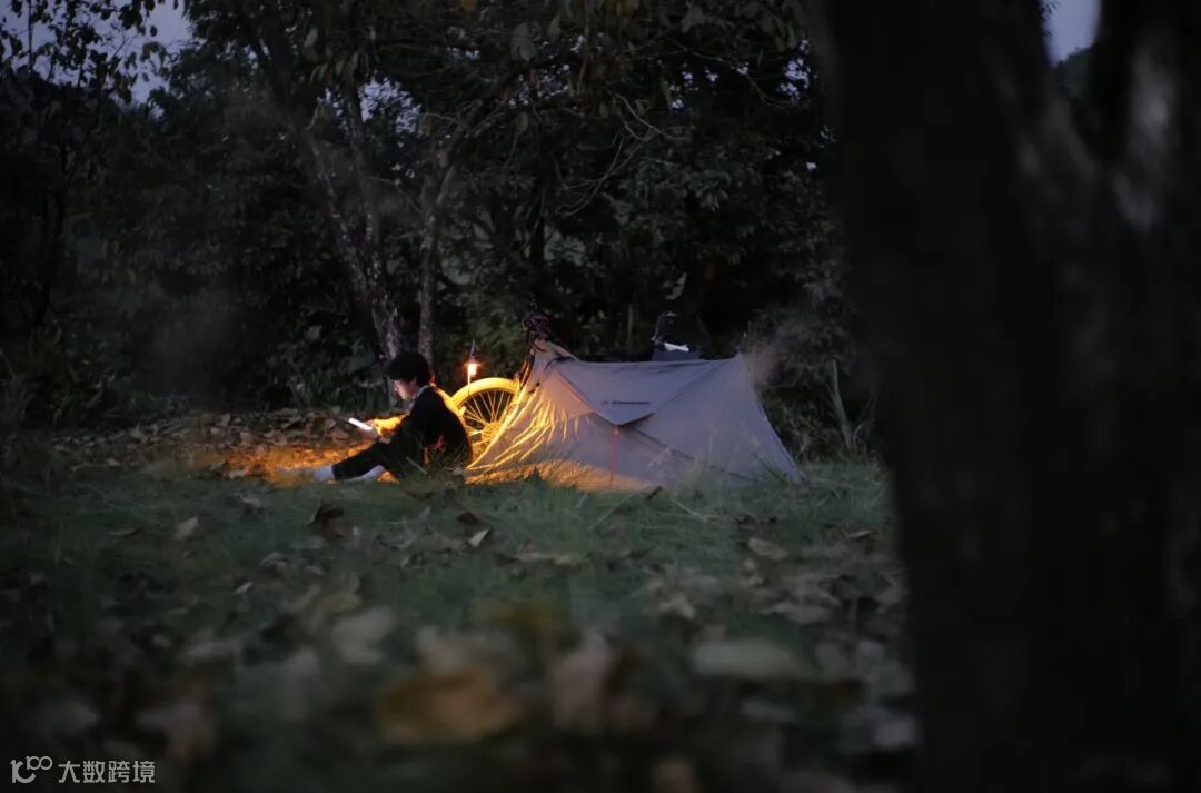 第二天醒来清晰可见水滴从帐篷滑落,以为是下雨了