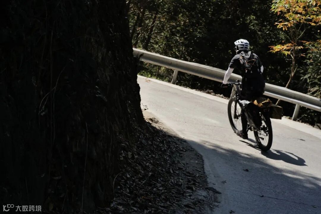 蜿蜒的山路上自行车起出了摩托车的感觉