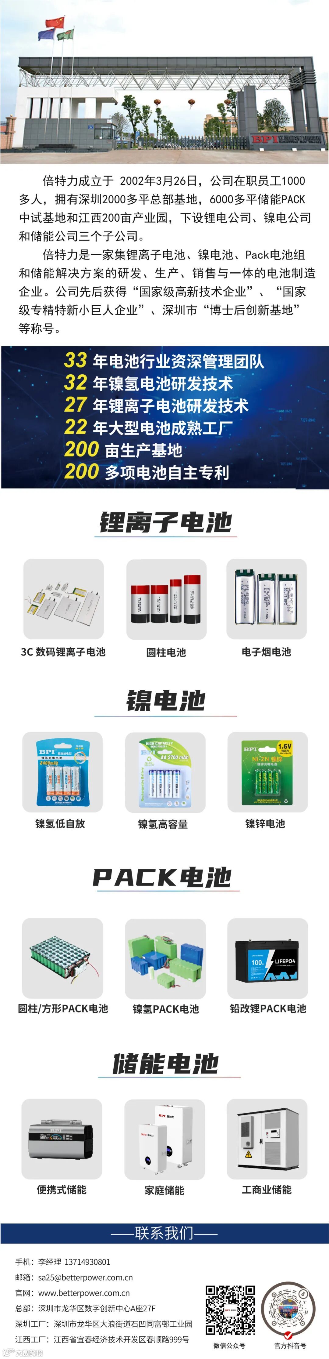 回顾过去,倍特力自2002年成立以来,以拼搏的研发实力和不懈的创新精神,在新能源领域迈出了一小步。倍特力研发团队专注于镍氢、锂电、PACK和储能产品等的研发和制造,推出了多款产品,为市场注入了新的活力。产品不仅销往全球80余个国家和地区,还获得了国家级专精特新“小巨人”企业等殊荣。这些成就的背后,是倍特力对品质的追求和对创新的执着。