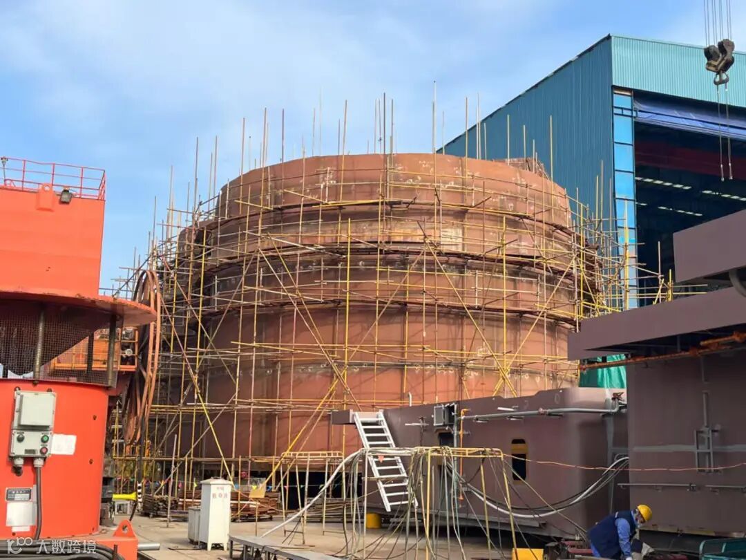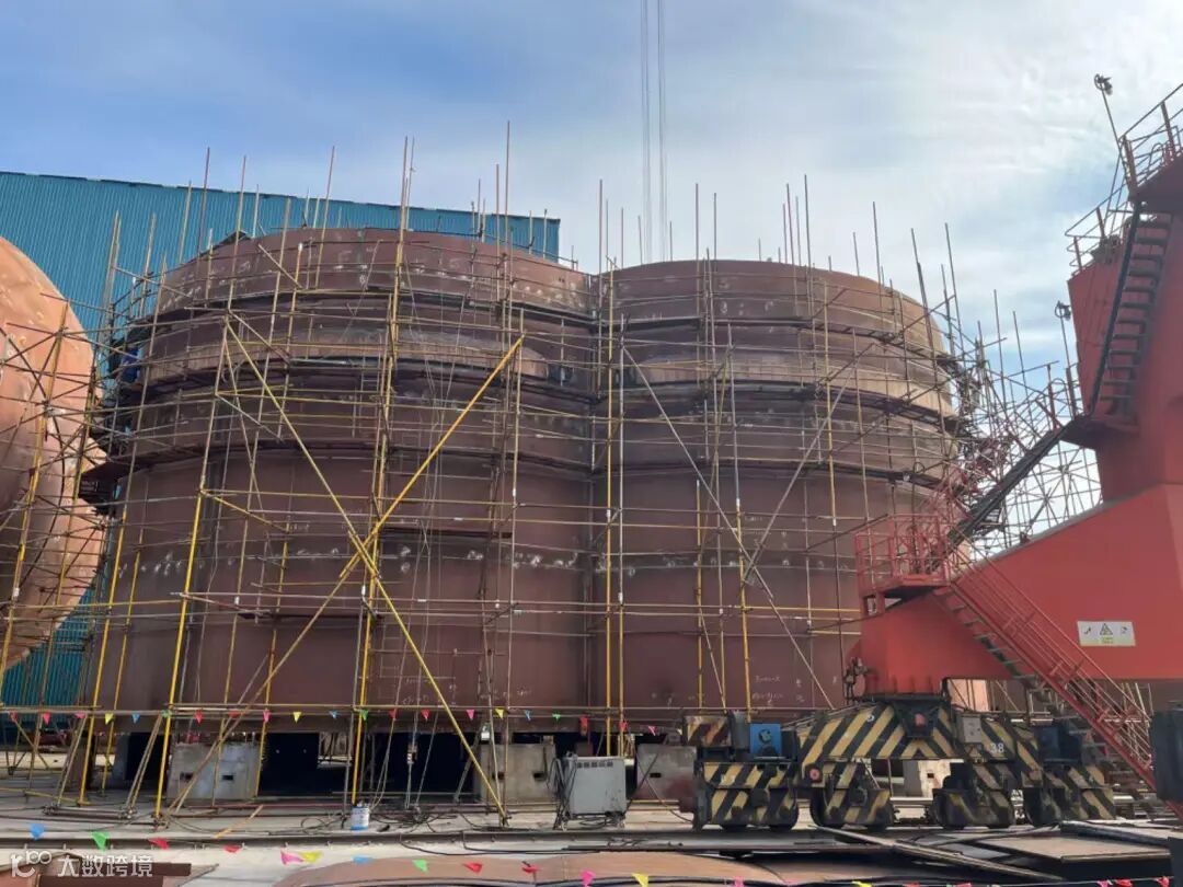 受损原因:台风造成龙门吊倒塌,砸在船体造成船体变形
