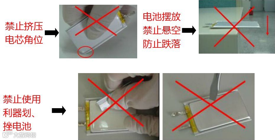 跌落、碰撞、弯曲等等都可能会降低聚合物电池的性能