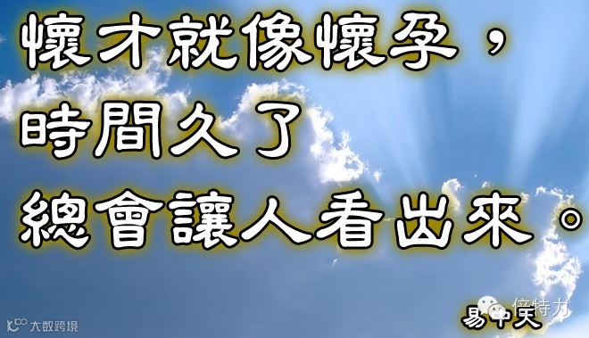 第四句:“怀才就象怀孕,时间久了会让人看出来”。人,切莫自以为是,地球离开了谁都会转,古往今来,恃才放肆的人都没有好下场。所以,即便再能干,也一定要保持谦虚谨慎,做好自己的事情,是金子总会发光。