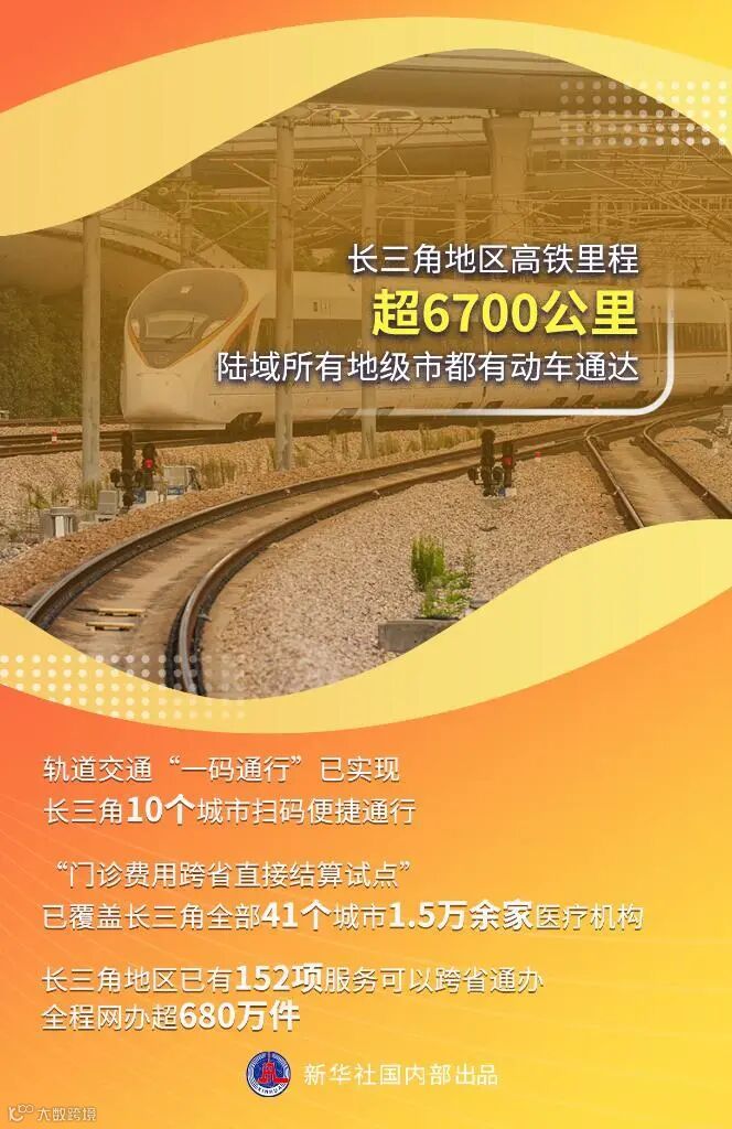 基础设施“一张网”:长三角地区高铁里程超6700公里,陆域所有地级市都有动车通达。