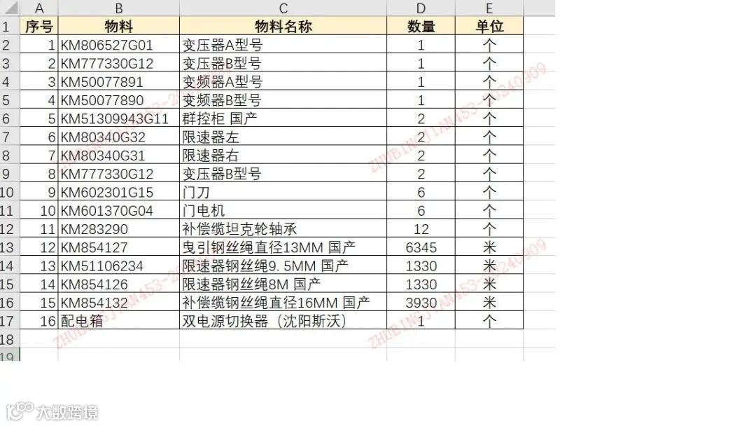 标的规格:KONE电梯水损配件