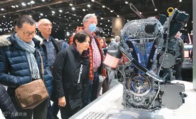 图为2月28日,观众在瑞士日内瓦举行的2024年日内瓦国际车展上参观比亚迪新款发动机。