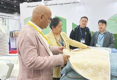 在家纺展区,中企带来的凝胶睡眠产品吸引了不少客商的目光。他们纷纷向企业负责人详细了解产品原料和性能特点,表达出与中国同行的合作意愿。“我的工厂使用了很多中国设备和中国原材料。”一名来自埃及的客商表示,希望在展会上找到更多优质原材料,也期待在母婴用品行业发现新的商机。他说:“在中东地区,从日常生活到工业生产的很多产品都来自中国。中国可靠的供货渠道,为维护全球产业链供应链稳定作出重要贡献。”