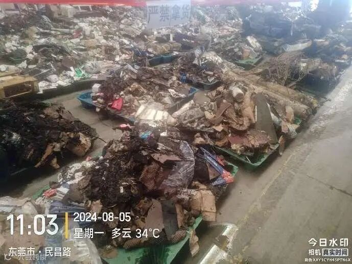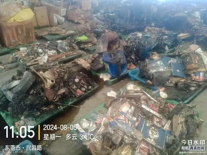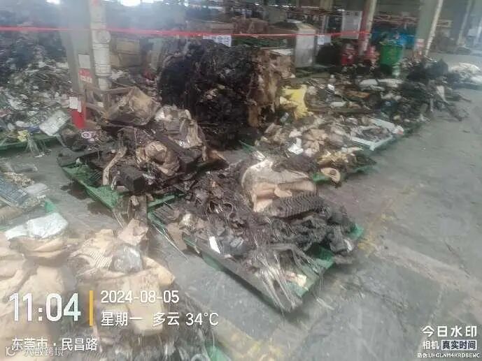 受损程度: 货物已过火,部分铁件