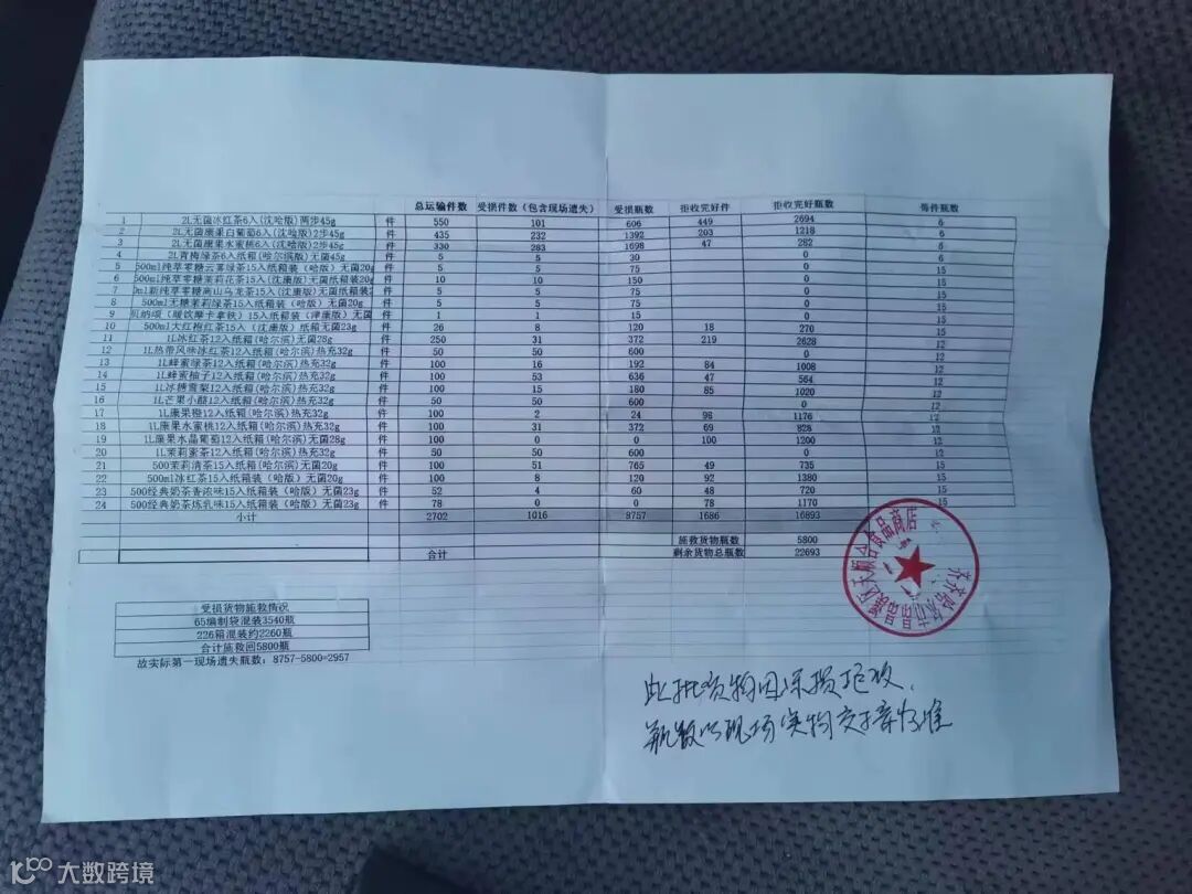 受损原因: 冻损、包装破损