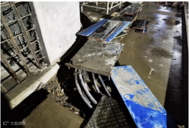 受损原因: 被台车坠落击穿
