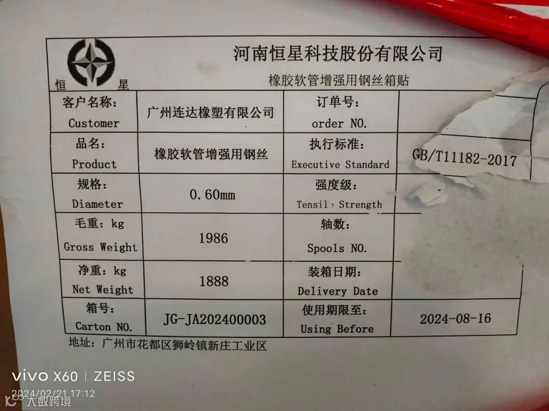 橡胶软管增强用钢丝 [3.7吨]