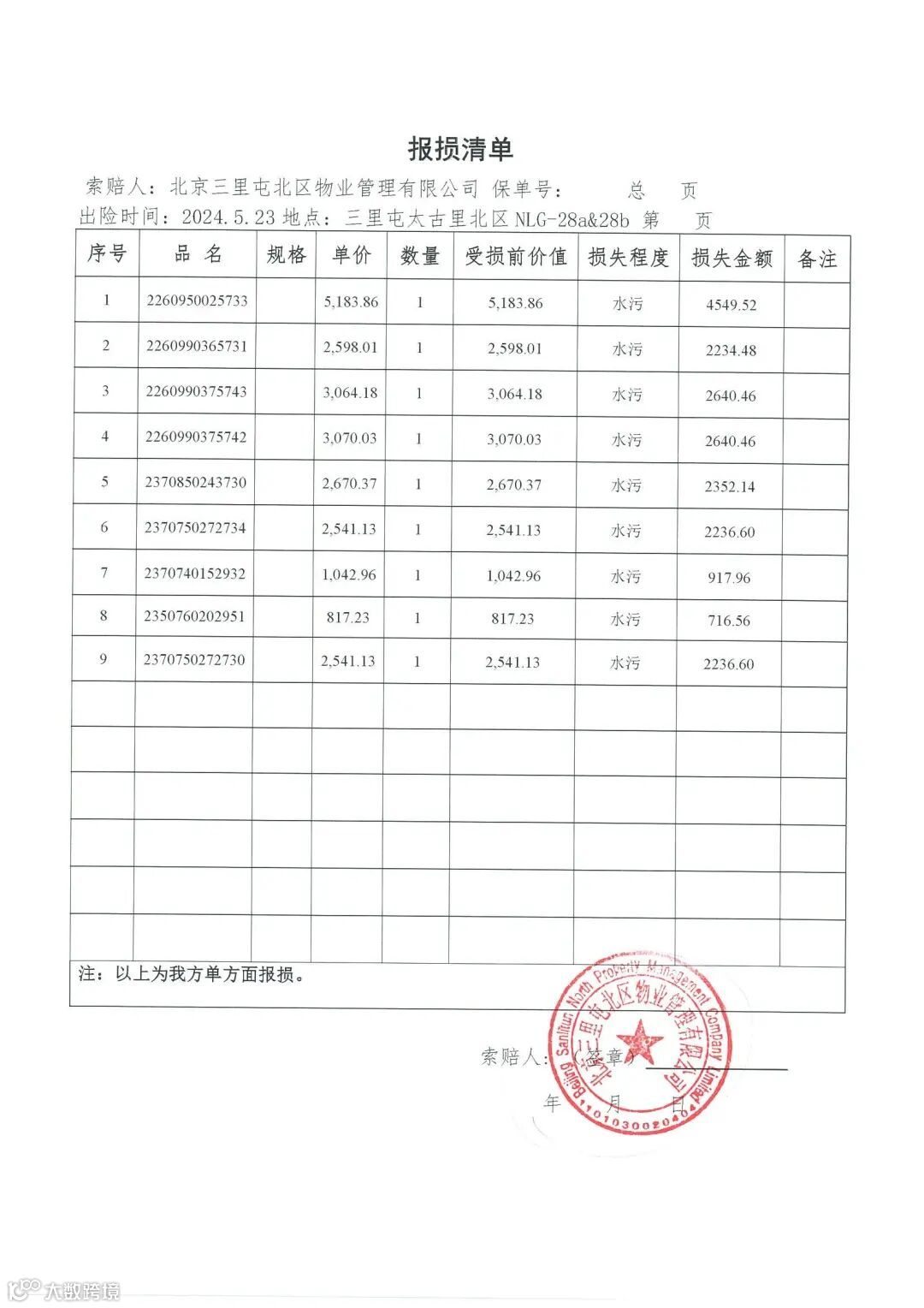 受损原因: 水湿