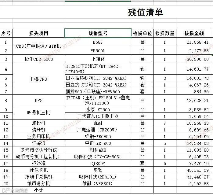 标的规格: 银行设备