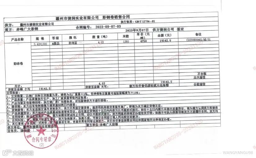 标的规格:0.40*1000mm 0.42*1000mm 0.24*1000mm