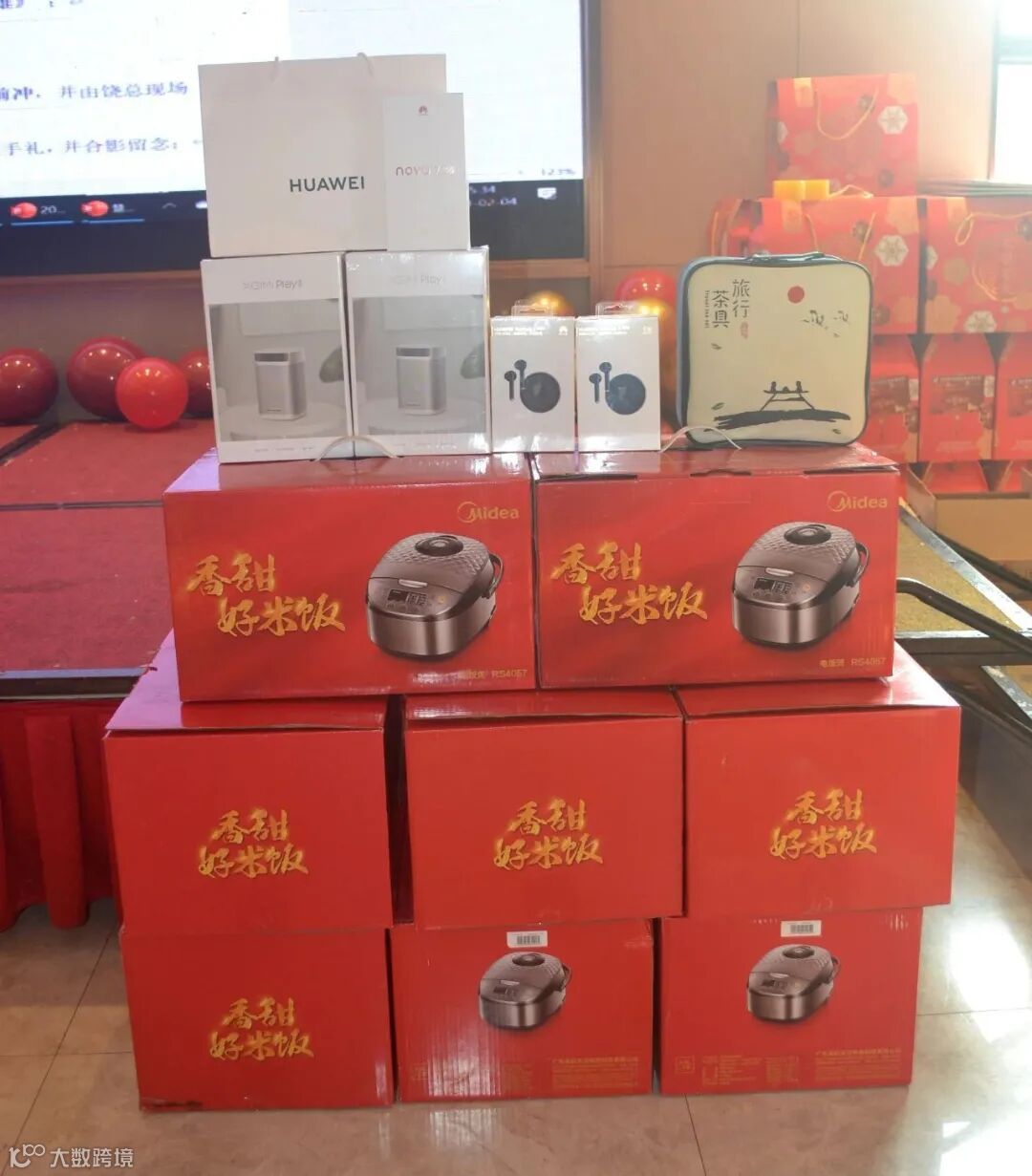 华为手机,极米投影仪,华为蓝牙耳机,电饭煲,海鲜大礼包