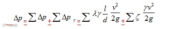 管路系统的总压力损失等于所有沿程压力损失和所有局部压力损失之和,即: