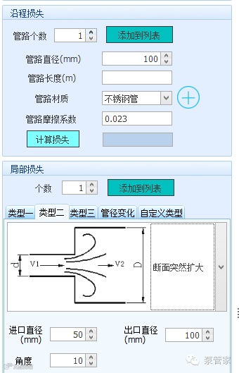 可利用现有软件, 计算出管路沿程损失和管路局部损失, 如义维开发的的选型软件系统, 以方便计算。