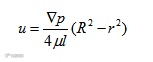 由式可知管内流速u沿半径方向按抛物线规律分布,最大流速在轴线上,其值为:
