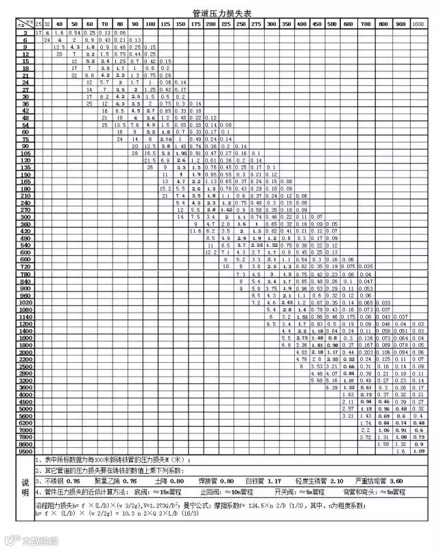 沿程损失与管壁粗糙度有关的沿程摩擦系数成正比关系,不同的管材其粗糙度不同,铸铁管比较粗糙,沿程摩擦系数就大些;塑料管比较光滑,沿程摩擦系数就小些。与管子长度成正比关系;与管径成反比关系,就是说,当流量一定时,管径小、流速快,则沿程损失大;还与流速的平方值成正比关系。当然计算比较繁琐,简单的方法可以估算。