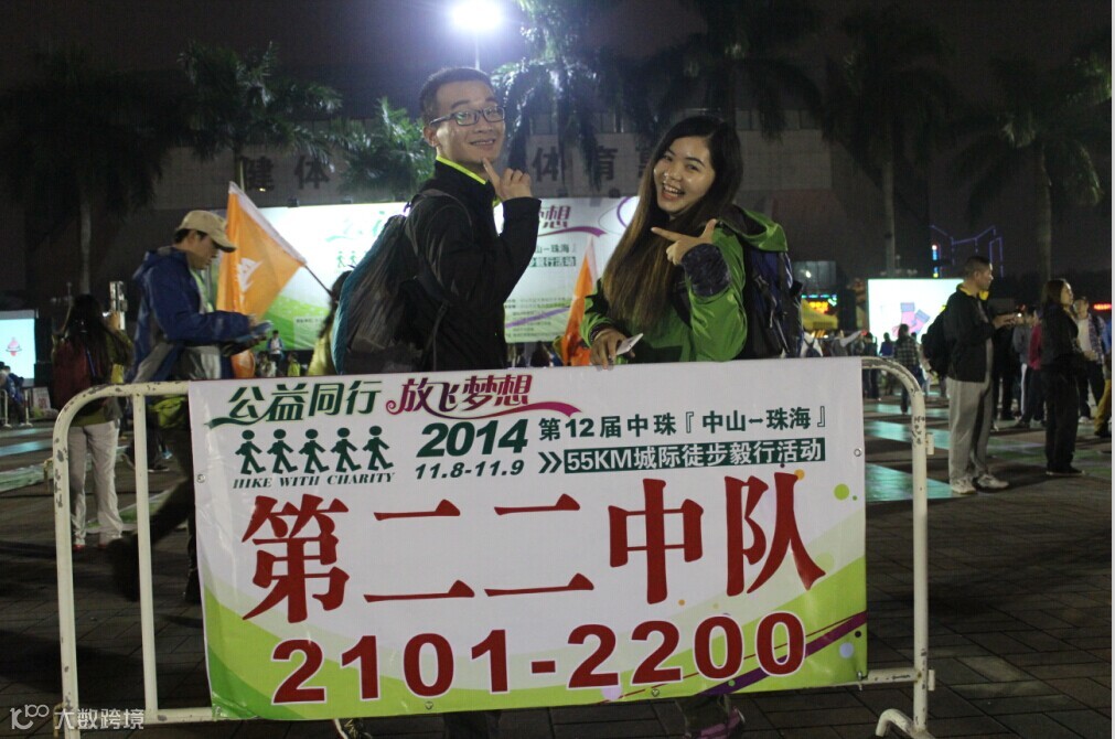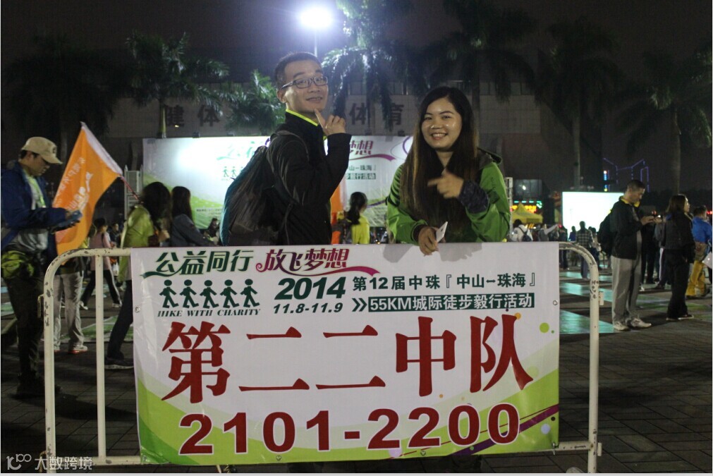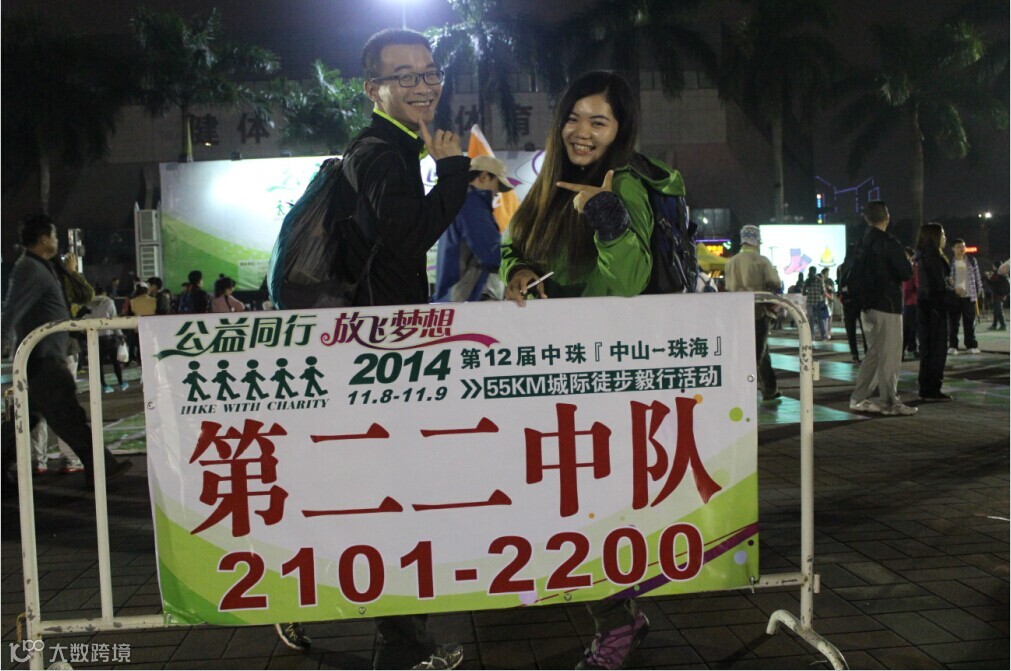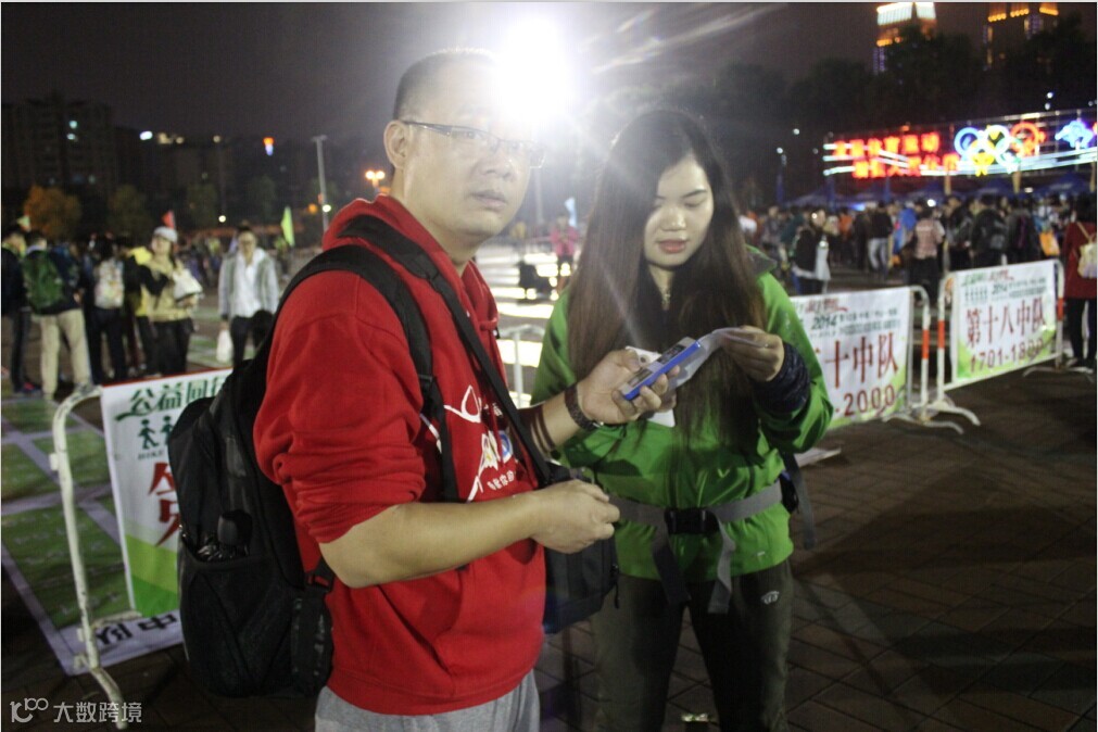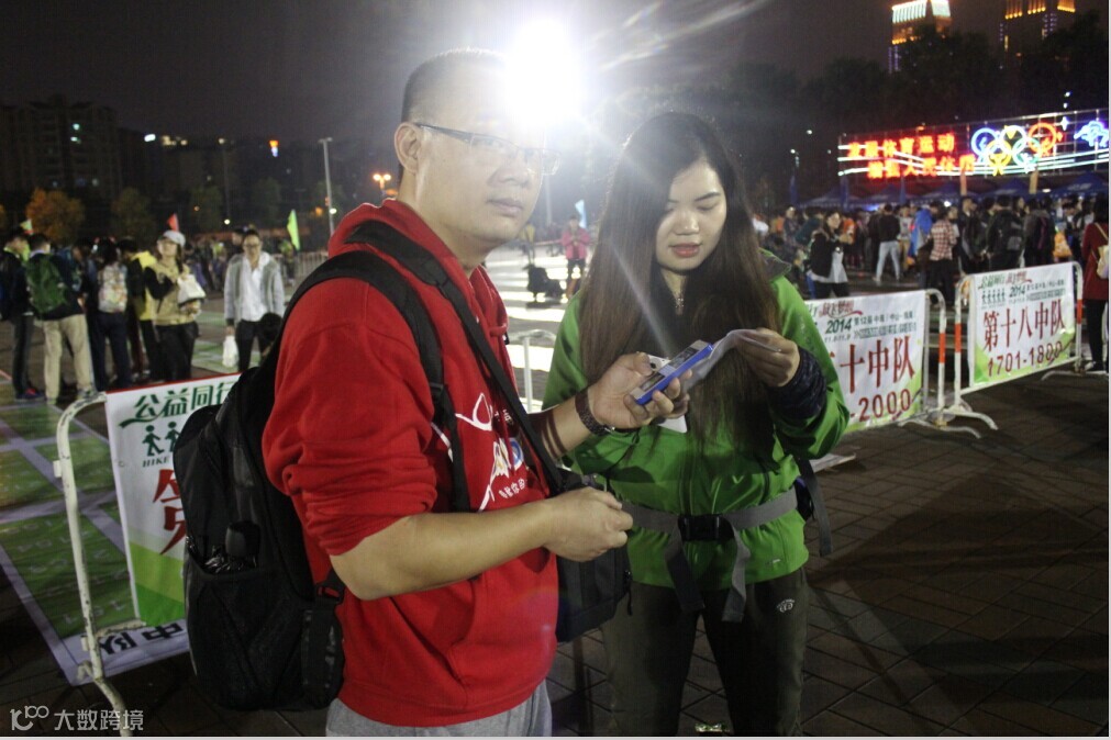徒步启动仪式有些漫长,足足用了半个多小时,出发后因为刷卡机慢而用了冗长的时间,我们真正刷卡离开广场的时间是夜里9:04分,野猪队所有成员紧紧跟随,刚开始的路段人挤人,3000多人的队伍浩浩荡荡,只能慢慢跟随人流往前走。