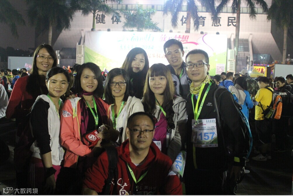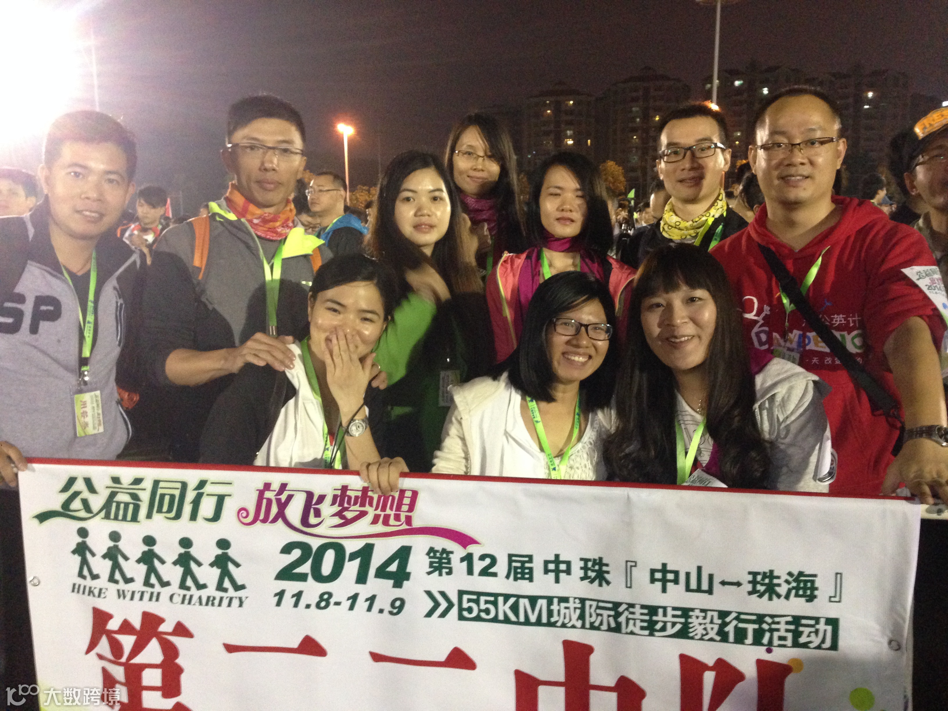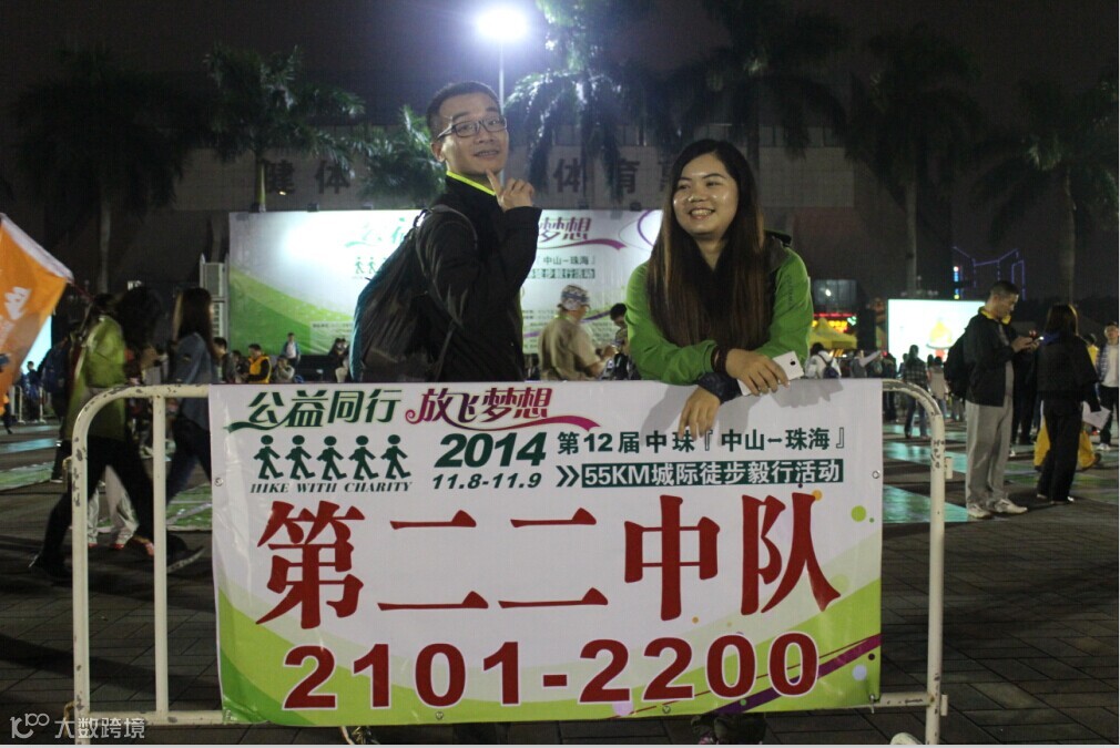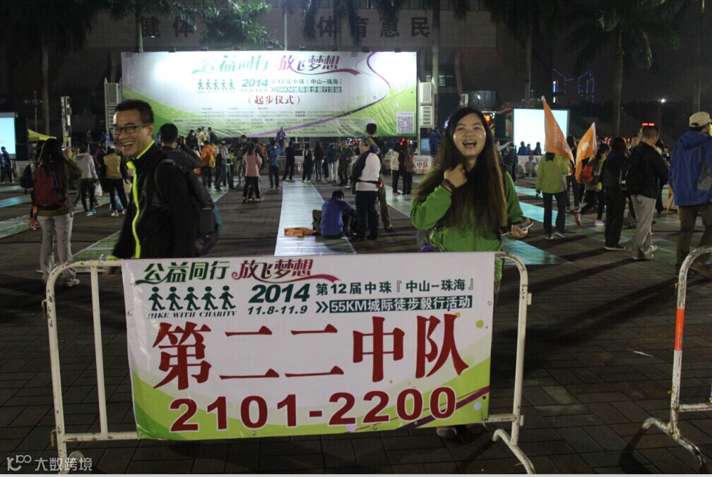 徒步启动仪式有些漫长,足足用了半个多小时,出发后因为刷卡机慢而用了冗长的时间,我们真正刷卡离开广场的时间是夜里9:04分,野猪队所有成员紧紧跟随,刚开始的路段人挤人,3000多人的队伍浩浩荡荡,只能慢慢跟随人流往前走。