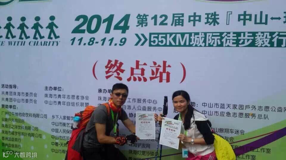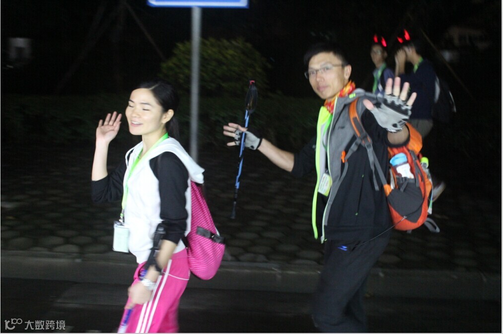 阿权尽管脚下已经起泡伤了,但仍旧在坚持,起初我们都担心他最后退出,40公里的时候,他已经落在后面,手杖用上了,走路有点慢,最后出乎意料的先阿南和zizi到达,这是一个大惊喜,我根本没想到,特别是他跟我们说他还有三公里的时候,按照他的情况,最少也要40分钟才能到。他的坚持力让我钦佩,也让当初可能要放弃队友的一些想法感到愧疚。