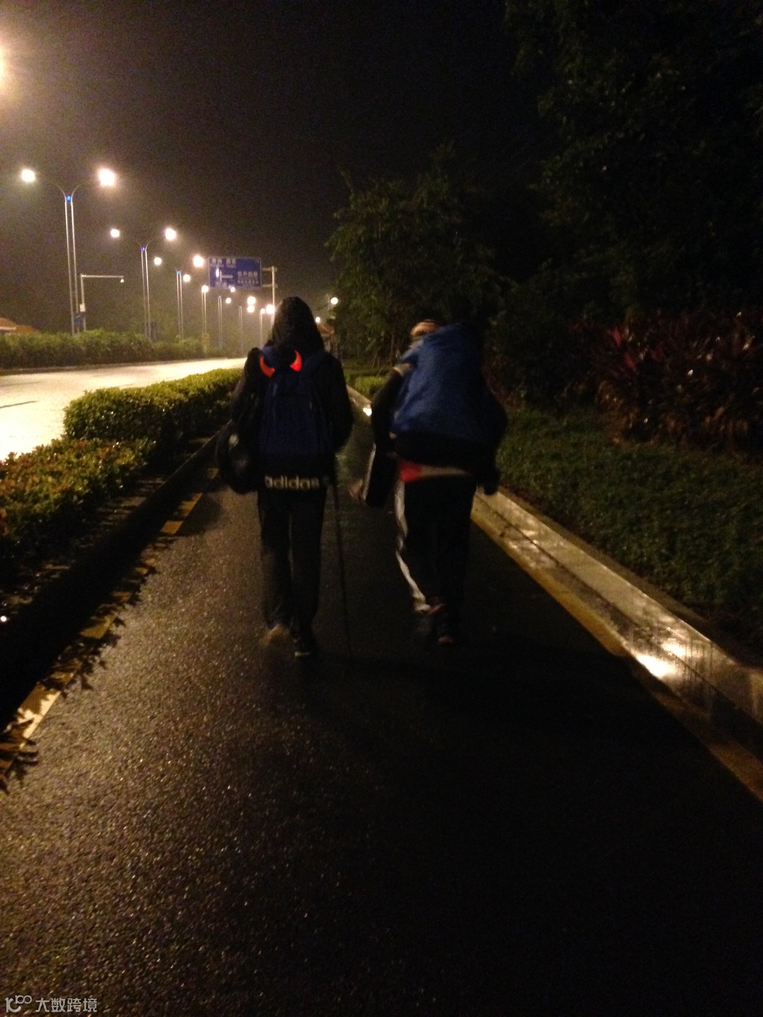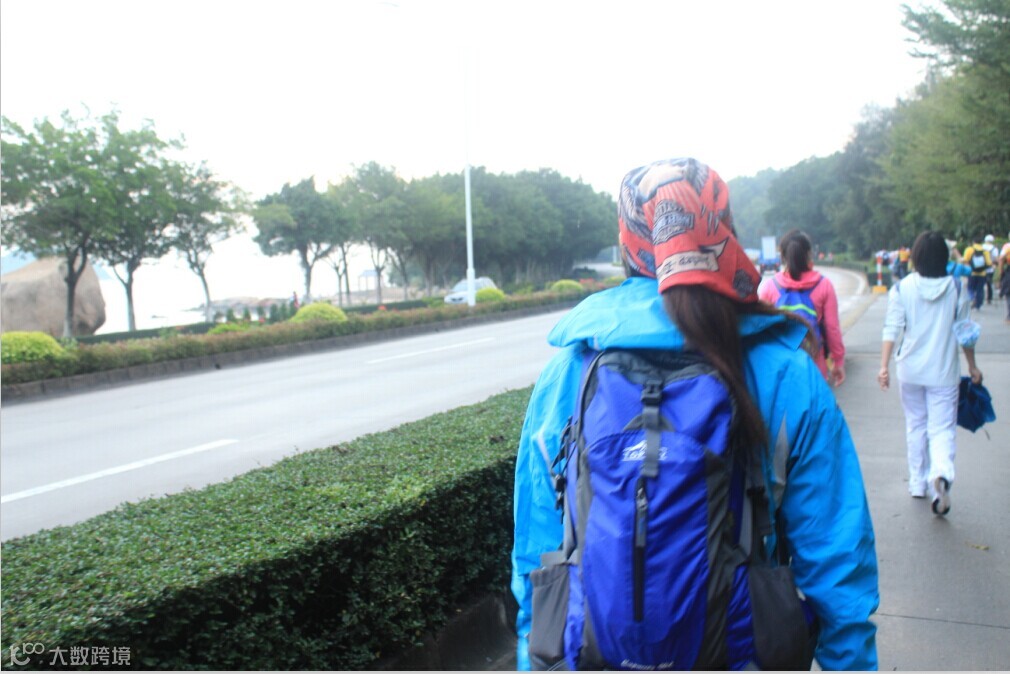 我们一路行走,走到夜里凌晨天空已经飘雨,队员行进速度各不相同,三三两两结伴而行,路上随时都可能超过别人也可能被人超过,我自己一个人走了几段路,对我来说体力不是问题,这次挑战应该也不算一次难度很高的挑战。路上遇到很多单独行走的人,一般他们都戴着耳机,按照他们自己的速度一直往前走,不说一句话。刚开始的十几公里还能见到一些小孩子,后来基本上就没有了,许是他们的父母接了他们回去,许是他们落在后面了;当我的速度越来越快时,你会慢慢追上一些人,一些老人,一些大妈,一些稚气未脱的学生,牵着手走路的情侣,大声聊着天的老外,还有一直吹着牛瞎BB的专业驴友,他们把所有去过的地方都用夸张的修辞手法大加阐述了一遍。