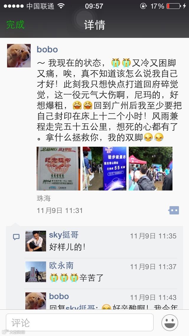 最后送上大家在结束那一刻对此次徒步的发言,让我们再次回味一下当时各位的感受。
