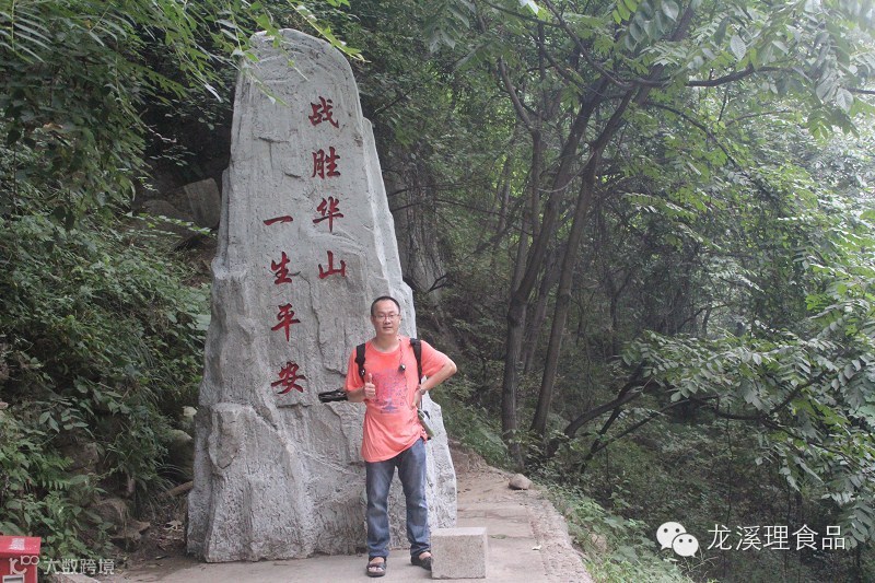 看见一处“战胜华山,一生平安”的石碑,立刻将之拍下来。