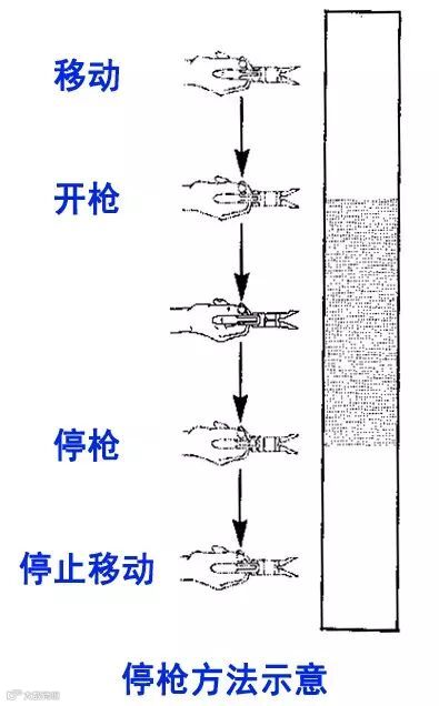 -解决方案:改变喷涂方向时应停枪,且应停枪后停止身体移动,开始身体移动后开枪