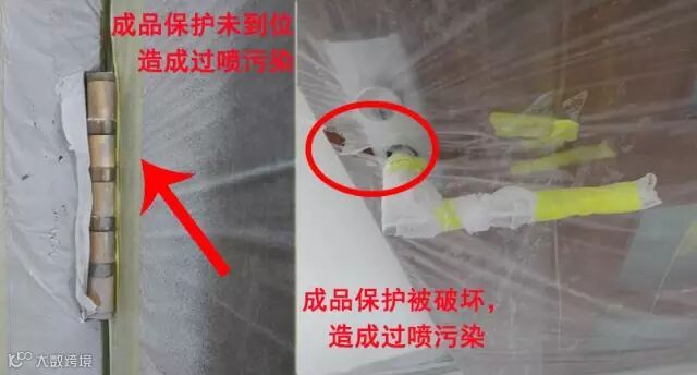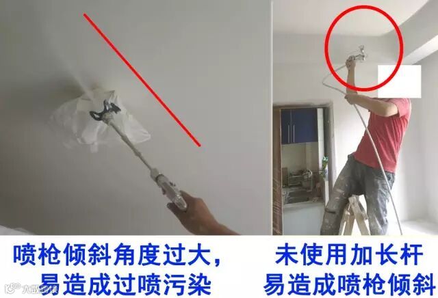 -解决方案:使喷嘴尽量垂直于墙面。对于顶面施工,建议使用加长杆,且喷涂距离应小于30cm并垂直墙面