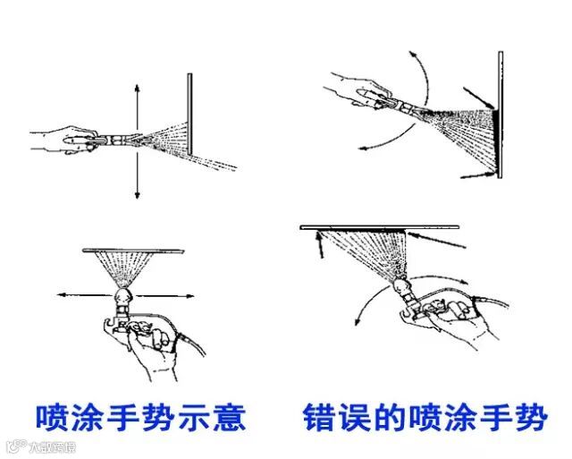 解决方案:依靠脚步移动来移动喷枪,使喷枪始终垂直于墙面