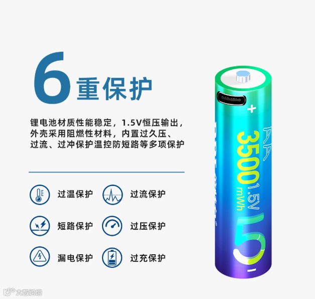 2.多 重 防 护: 内置安全设计,有效防过充、过放与短路。