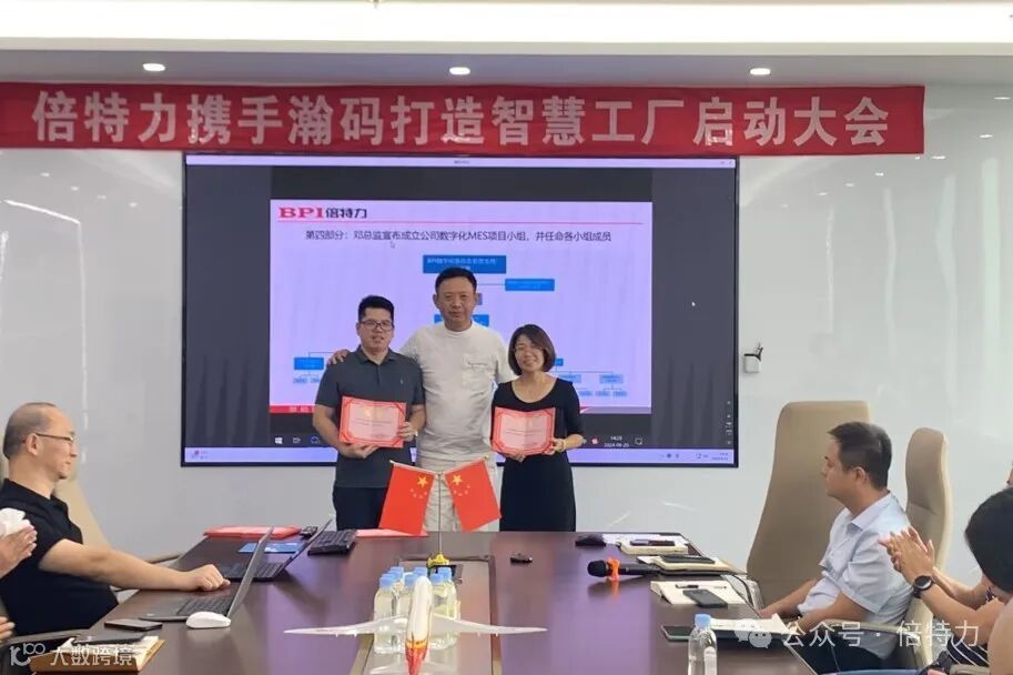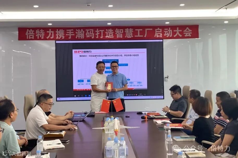本次会议内容包括MES项目介绍、数字化项目主席叶总讲话、龙董及项目实施负责人钟总讲话、倍特力数字化MES项目小组成立并任命各小组成员、颁发聘书并签署项目责任书等。