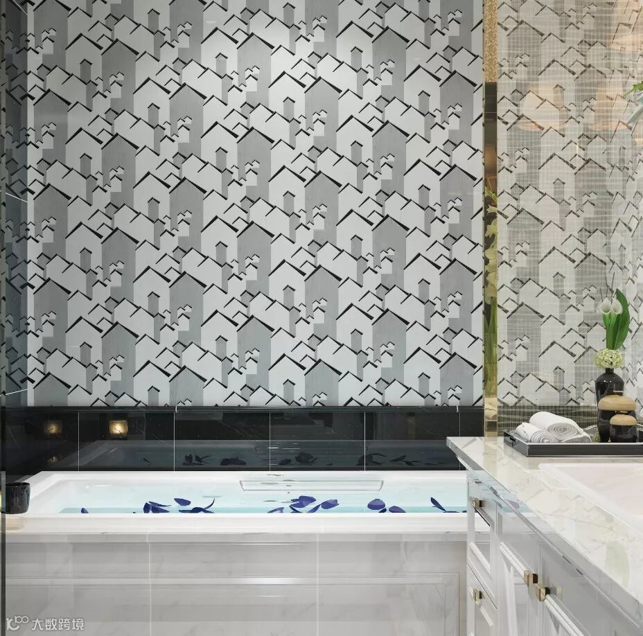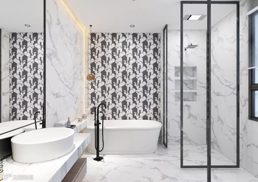 ▲与卫浴空间相搭配,色彩分明,线条简约,好似听见细细的吴侬软语,使整体空间效果极具艺术气质。