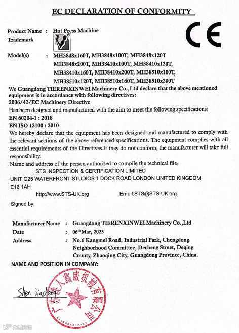C04 热压机 Declaration of conformity