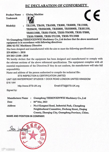 C05 涂胶机 Declaration of conformity