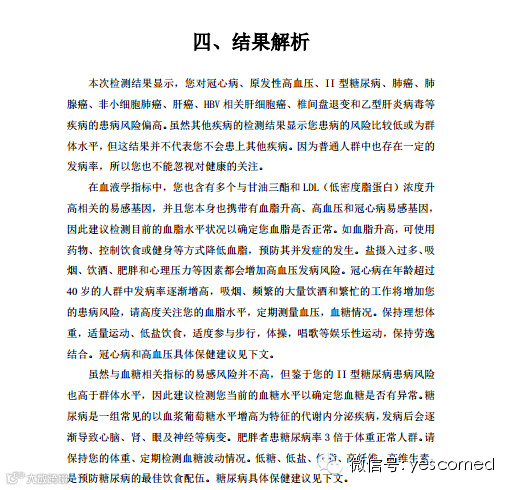 报告最后会对您的检测结果作详尽的解析,包括对您的易发疾病做出 专业的风险提示和预防建议。