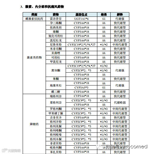 接下来,报告会详细列出各类药物在您身体内的代谢情况,让您了解哪些药物您需要谨慎服用。