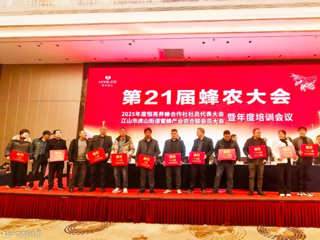 江山恒亮蜂产品股份有限公司于近日圆满举办第21届蜂农返利大会。在这个充满暖意的十二月,公司延续二十一年来的承诺,向广大合作蜂农发放年度补助与返利,今年总额达105万元。自2005年首届大会至今,恒亮累计为蜂农发放补助与返利金已达3970万元,以实际行动持续书写“心系蜂农、携手共富”的动人篇章。