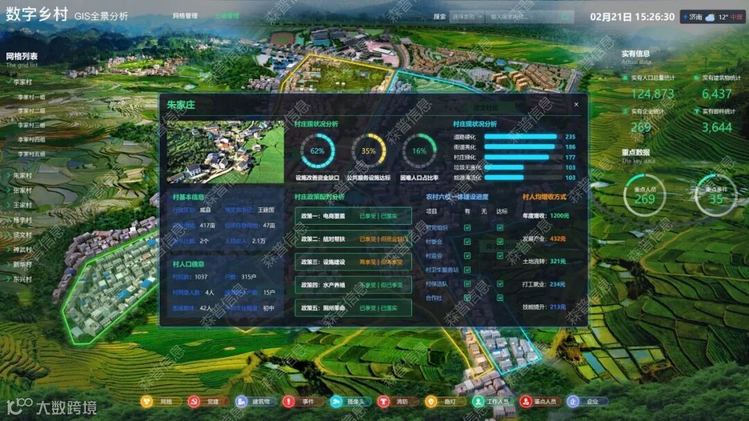 其次是搭建预警分析平台,助力美丽乡村建设。赋能乡村精细化治理,时刻把握乡村概况,及时预警污染、破坏性生产活动。数字乡村平台集数据采集、管理、应用发布的一体化应用系统。24小时动态监测,并对监测数据进行存储、管理、查询、统计和分析,当水质、局部空气质量达到预警值时实时报警。通过环境巡查自主上报或物联网设备预警,实现人居环境整治工作全过程系统记录,实时生成工作台账。