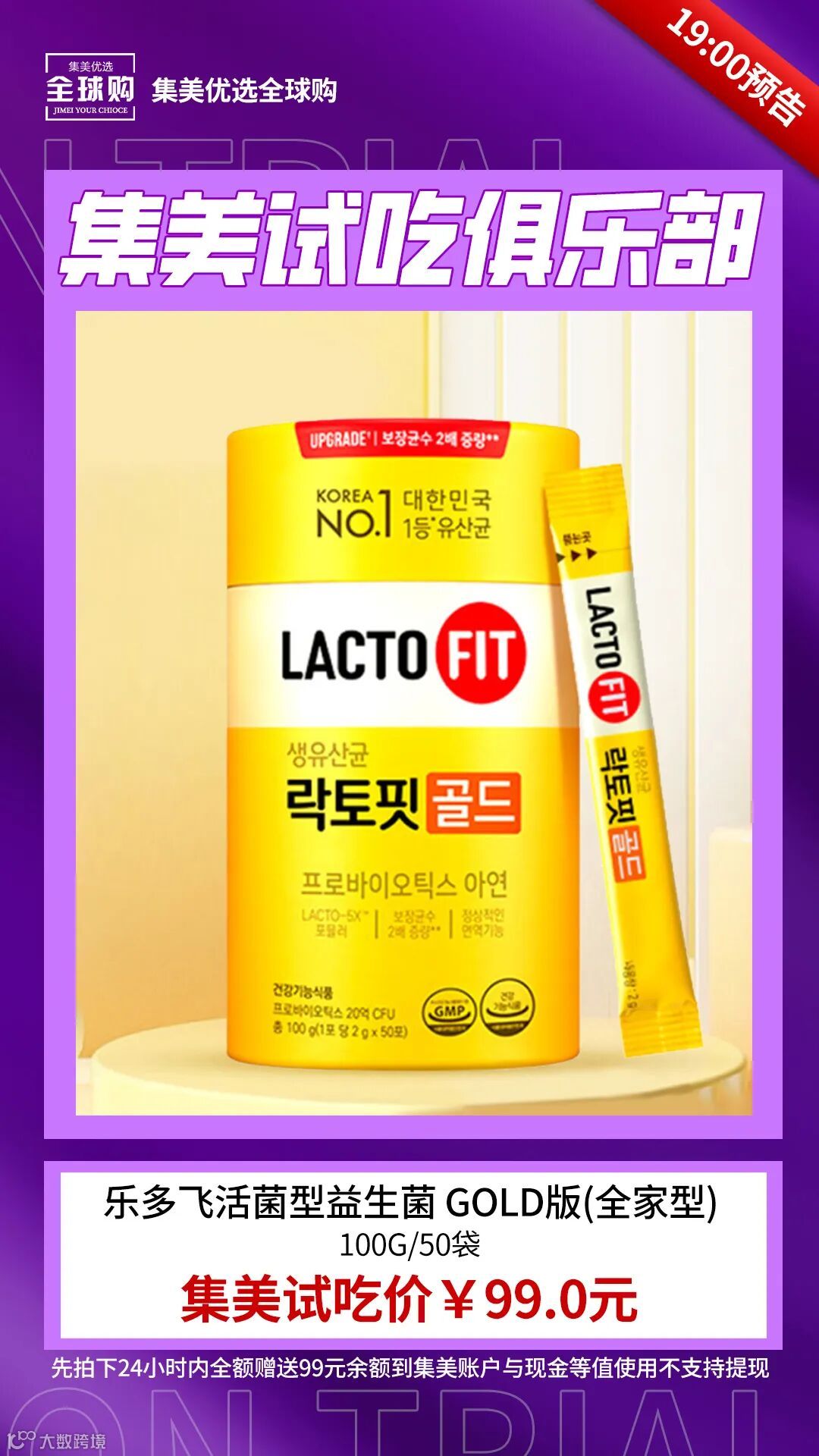 【试吃补贴】乐多飞活菌型益生菌 GOLD版(全家型)100g/50袋