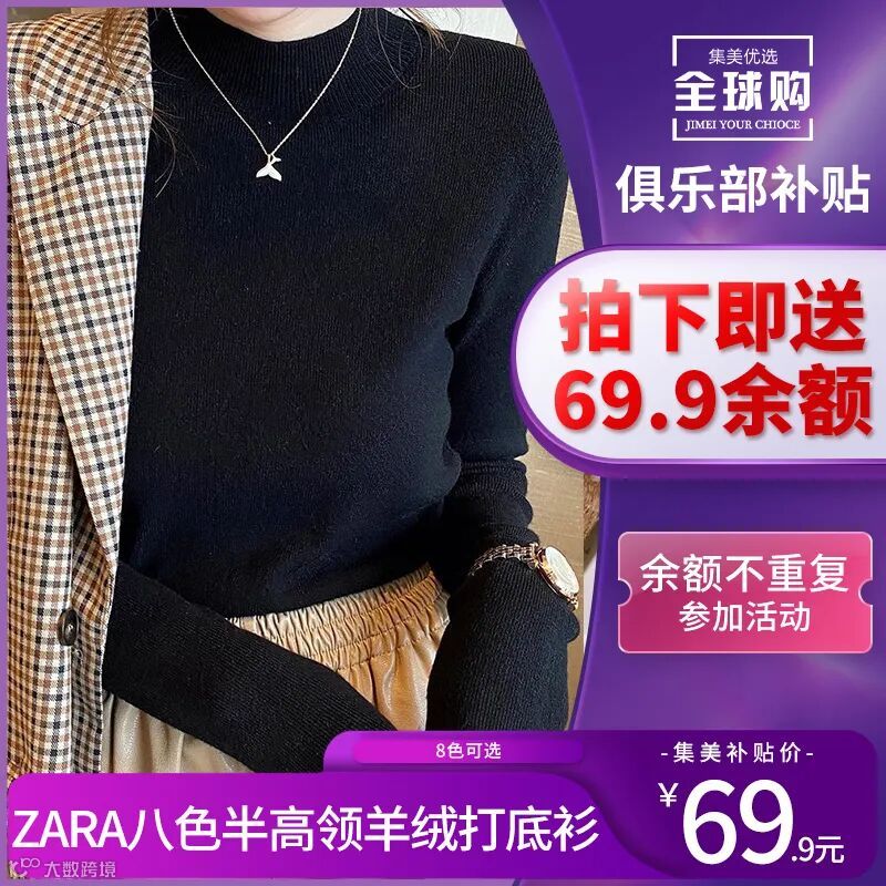 【俱乐部补贴】ZARA八色半高领羊绒打底衫(8色可选)