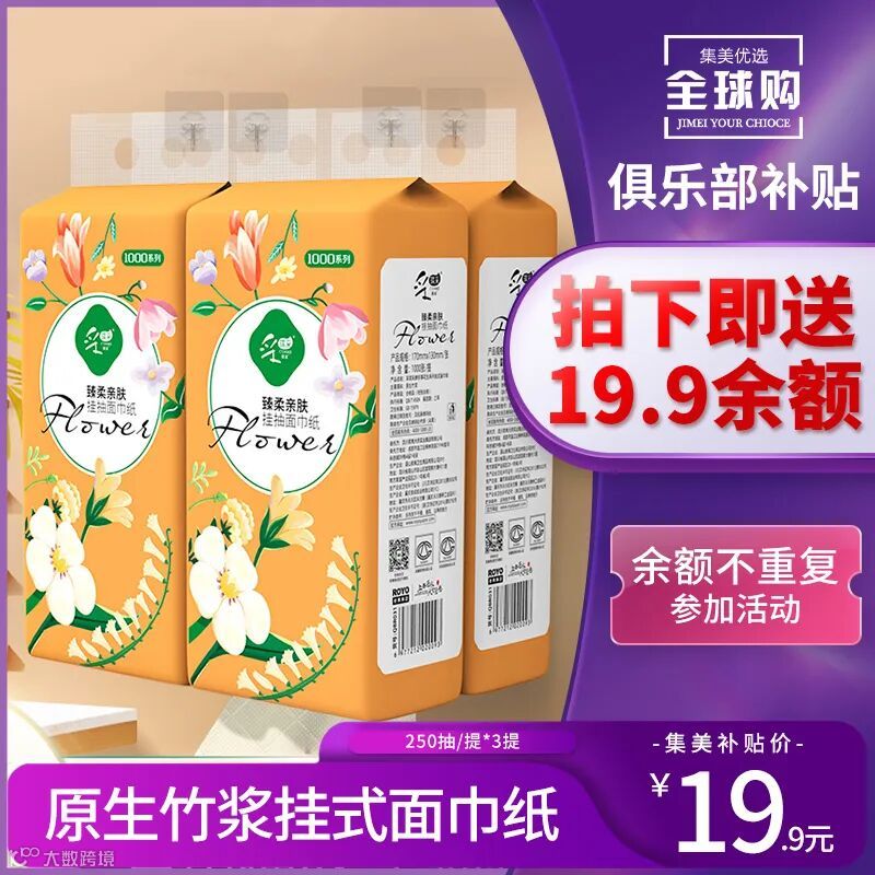【俱乐部补贴】采琪采好事花生系列原生竹浆挂式面巾纸250抽/提*3提