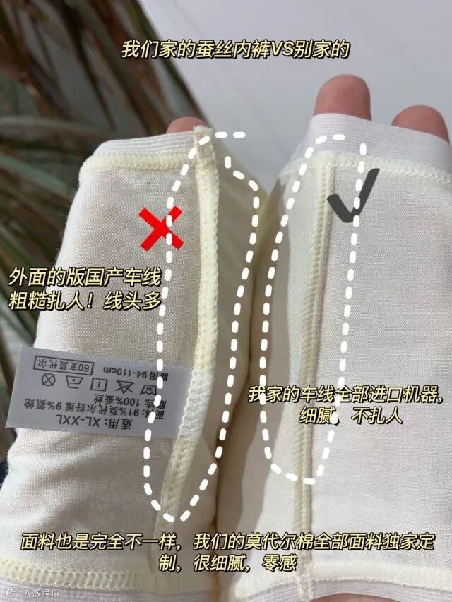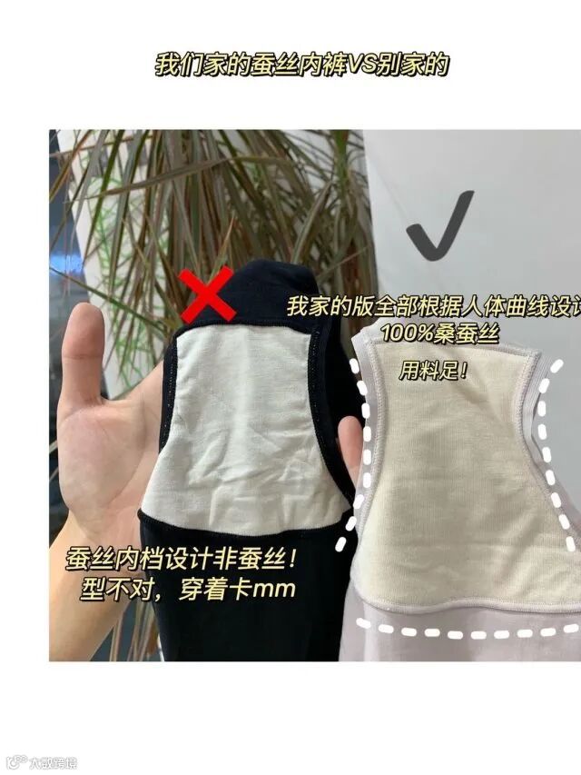 裆部采用100%桑蚕丝,