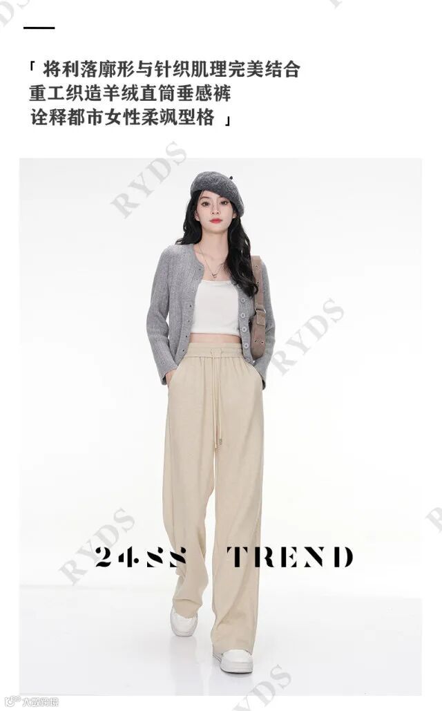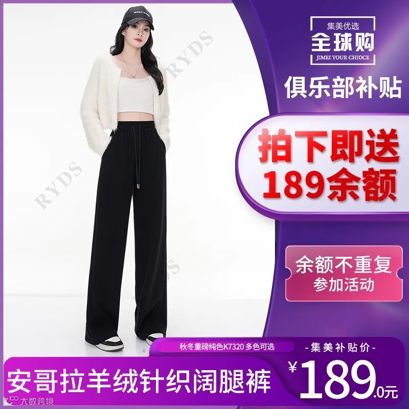 【俱乐部补贴】秋冬重磅纯色安哥拉羊绒针织阔腿裤K7320